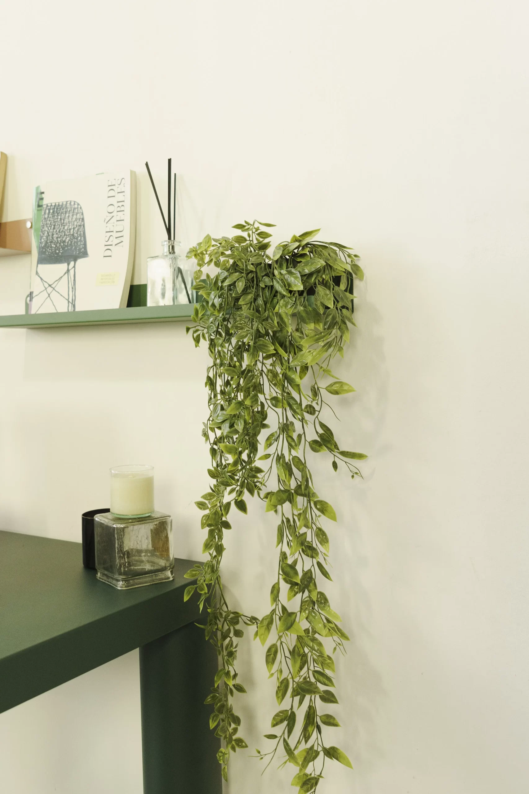 Gracias a su diseño colgante, es ideal para añadir verticalidad, frescura y volumen decorativo en estanterías, techos o rincones elevados.