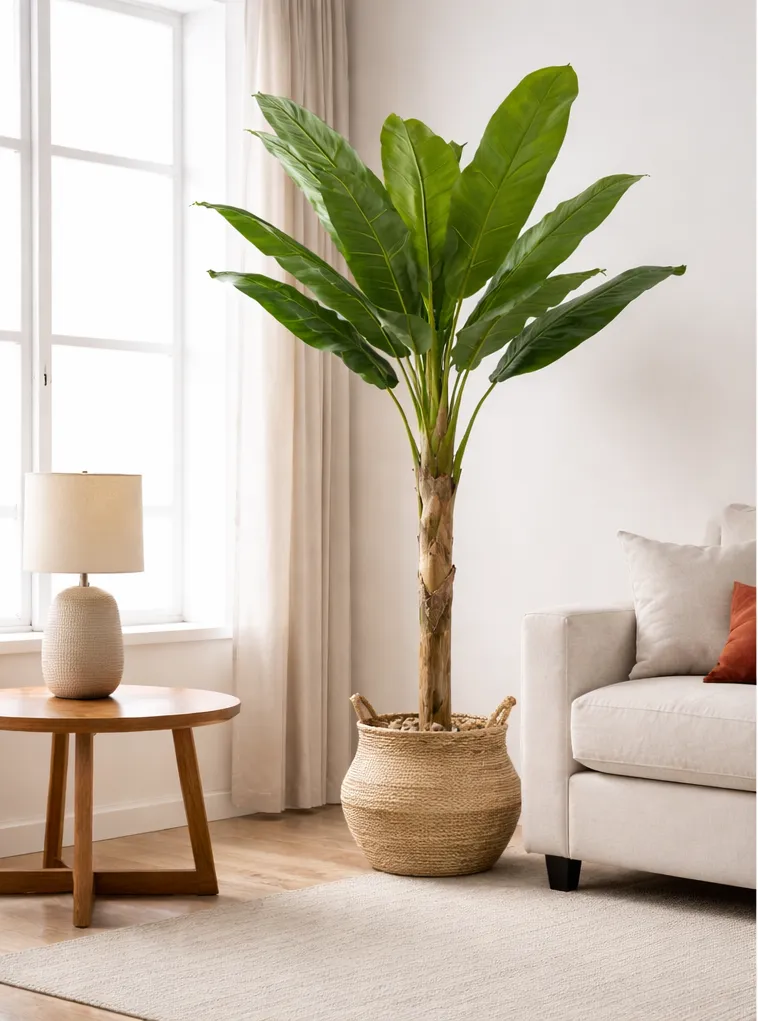 En Valyria Home seleccionamos plantas artificiales de alta calidad con acabados premium y diseño realista. Nuestra Platanera de 180 cm ofrece una combinación perfecta de presencia tropical, elegancia visual y cero mantenimiento, ideal para transformar cualquier ambiente con frescura y estilo.